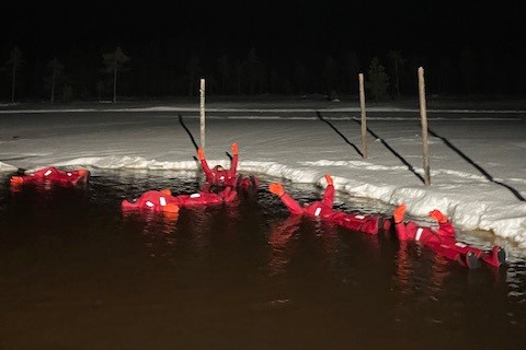 Am Abend haben wir das „Ice Floating“ gebucht. Mit einem Kleinbus ging es über tiefverschneite Straßen, durch verlassene Wälder, bis wir schließlich bei einer kleinen Hütte ankamen. Dort hieß es dann, Schuhe aus und Überlebensanzug an. Eingepackt in dem Anzug watschelten wir im wahrsten Sinne zum See, welcher zugefroren vor uns lag. Ein kleiner Bereich war vom dicken Eis befreit und gut beleuchtet. Nun ging es rückwärts ins Wasser, unterstützt von einem Guide legten wir uns ins eisige Wasser und schwebten schwerelos unter dem klaren Sternenhimmel. Die Erfahrung ist einzigartig: der Sternenhimmel dreht sich, der eisige Wind peitscht einem ins Gesicht, man spürt das kalte Wasser, der Mond steigt hell auf – und plötzlich - unerwartet verfärbt sich der Himmel in seine schönsten Grüntöne – Polarlichter! Wir konnten das unglaubliche Naturschauspiel des Polarlichtes beobachten. Einen schöneren Ort hätte es für dieses Spektakel nicht gegeben! Beindruckt mit der Erfahrung des Ice Floatings und dem Glücksgefühl die Polarlichter gesehen zu haben, ging es nach dem Aufwärmen vor dem Holzofen zurück.