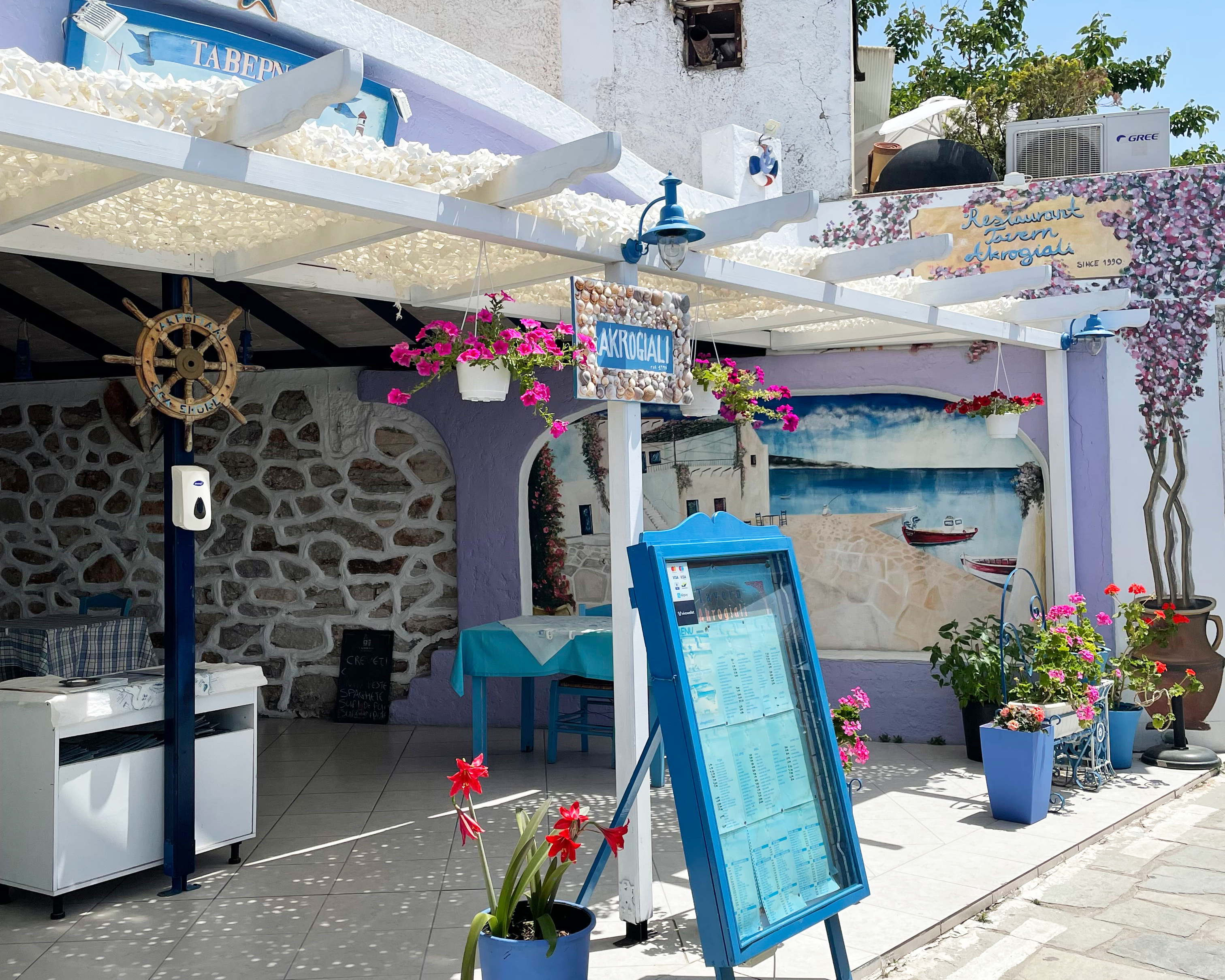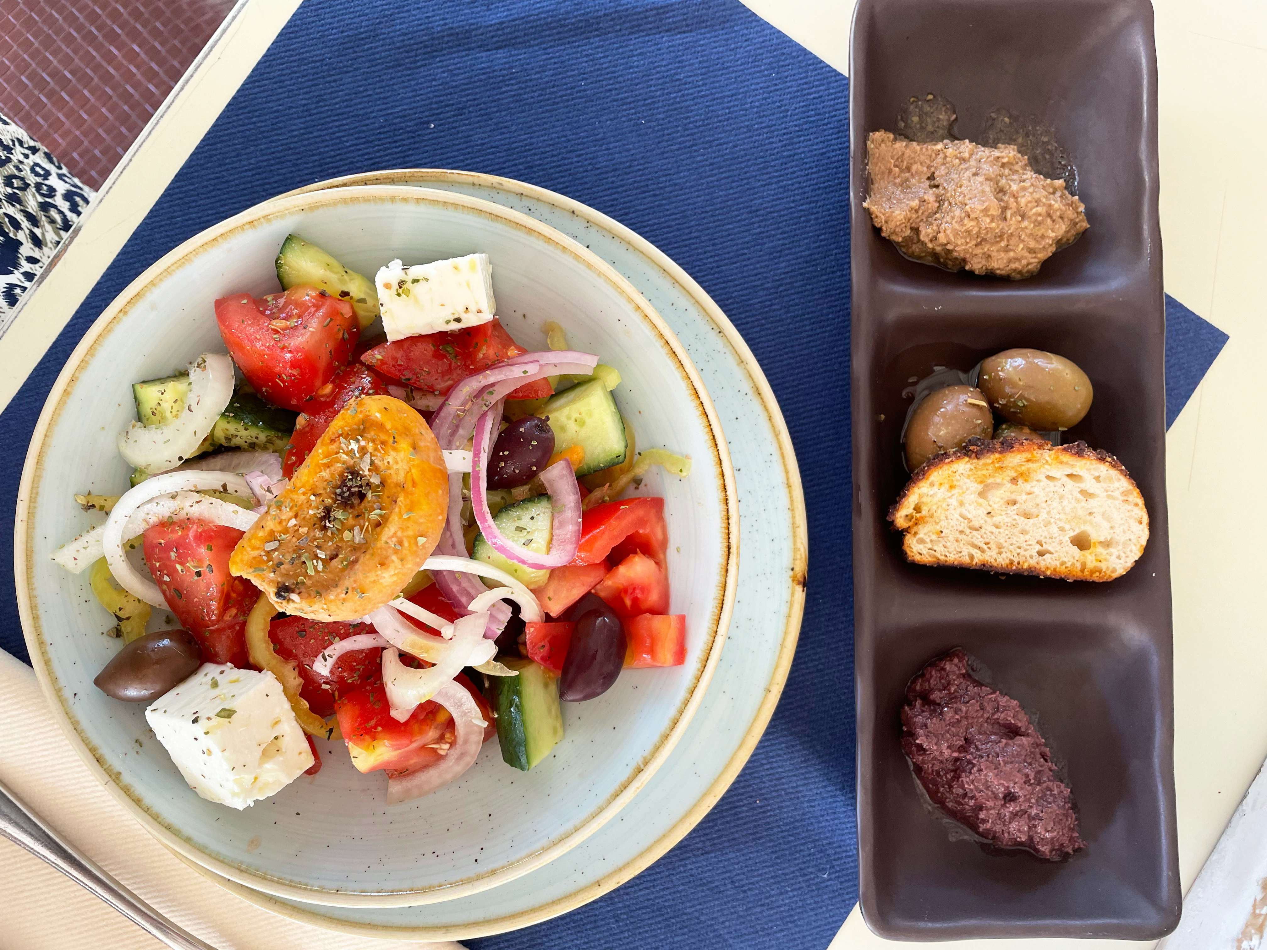 Unseren ersten Halt machten wir bei der bekannten Lagune „Auge des Zeus“ - von den Einheimischen auch „Aphrodites Träne“ genannt. Dabei handelt es sich um einen wunderschönen türkisblauen Naturpool von rund 20 x 15 Metern, umrandet von Klippen und Felsen. Bei unserer Ankunft konnten wir schon aus der Entfernung ein paar Mutige sichten, die den Sprung von den Klippen ins Wasser wagten. Mein Tipp: Der Auf- und Abstieg zu dieser schönen Oase ist etwas schweißtreibend und man benötigt unbedingt festes Schuhwerk. Doch hat man es erstmal dorthin geschafft, wird man vom farbenfrohen Lichtspiel der Lagune und mit ganz viel Badespaß und Abkühlung belohnt. Ich empfehle zudem, Giola früh morgens zu besuchen, dann trifft man noch nicht so viele Badenixen an und kann das Hideaway ganz für sich alleine genießen. Unseren ersten Tag auf der Insel verbrachten wir mit Baden und Entspannen - ein guter Start in unseren langersehnten Urlaub.