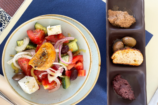 Um einen Einblick in das traditionelle Inselleben zu bekommen empfiehlt es sich, einen Ausflug in eines der pittoresken Bergdörfer von Thassos einzuplanen. Egal ob Panagia, Theologos, Kazaviti, Kastro oder Maries – die Dörfer sind alle auf ihre ganz eigene Weise besonders! Unsere Wahl fiel auf Panagia im Nordosten der Insel. Der Ort verzaubert mit kopfsteingepflasterten Gässchen und charmanten Häusern aus Stein. Wir erreichten das Dorf um die Mittagszeit, was ideal war, um der glühenden Mittagshitze zu entfliehen. In einer der urigen Tavernen suchten wir uns ein schattiges Plätzchen, genossen griechischen Salat mit Pita Brot und Tzaziki, wobei wir die Seele baumeln ließen. Yanis, der Besitzer der Taverne, erzählte uns in begeisterter Manier von seinem Leben auf der Insel sowie von seiner eigenen Honigproduktion. „Der Thymian verleiht dem Honig eine ganz besondere Note“, so der sympathische Grieche.