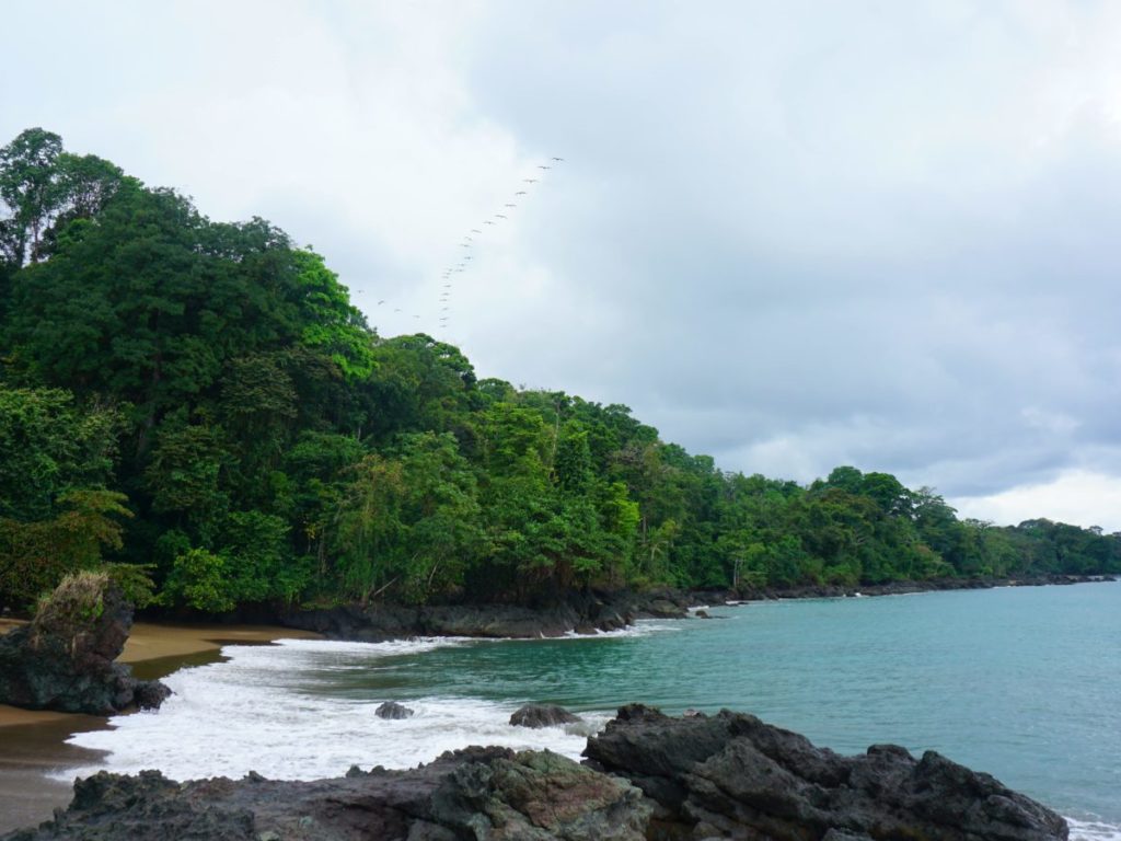 Auf der südlichen Halbinsel Osa wollten wir eigentlich den bekannten Nationalpark Corvocado erkunden, doch durch unsere Unorganisiertheit haben wir des leider ein bisschen verpasst und doch eine der schönsten Wanderungen überhaupt von Bahia Drake aus unternommen, bei der uns permanent ein laut schreiendes Papageienpaar verfolgte.