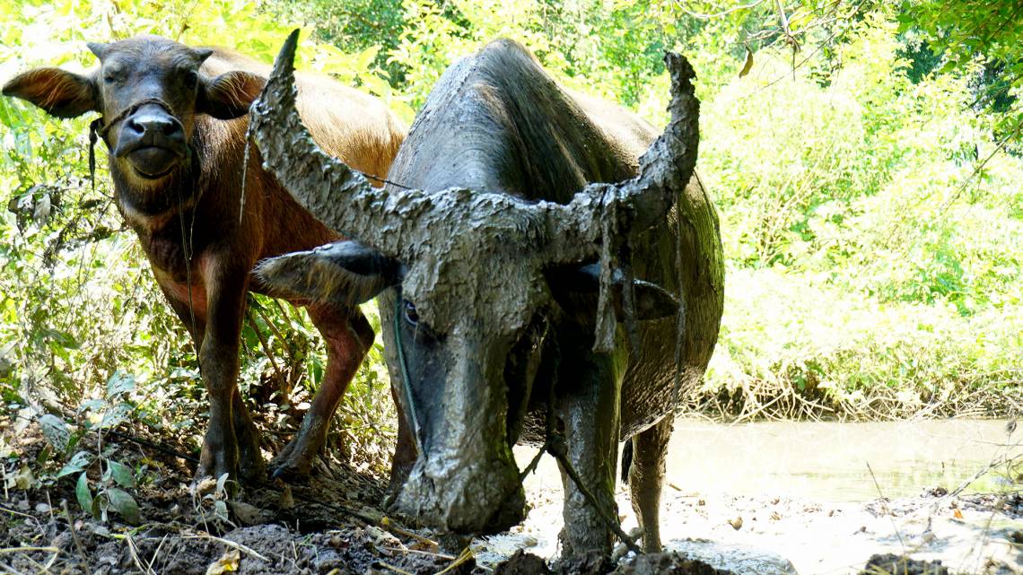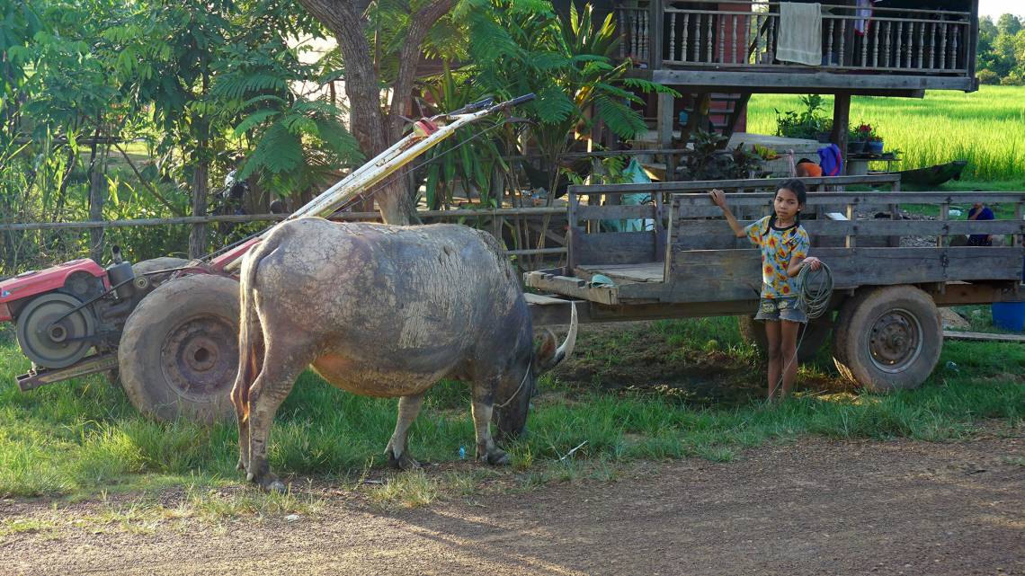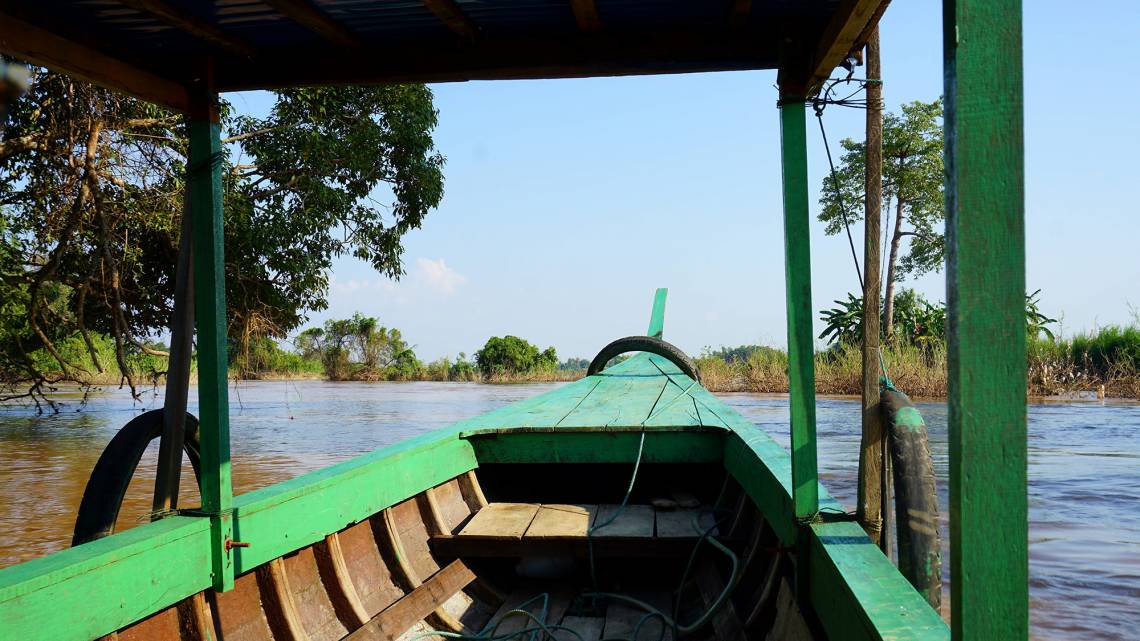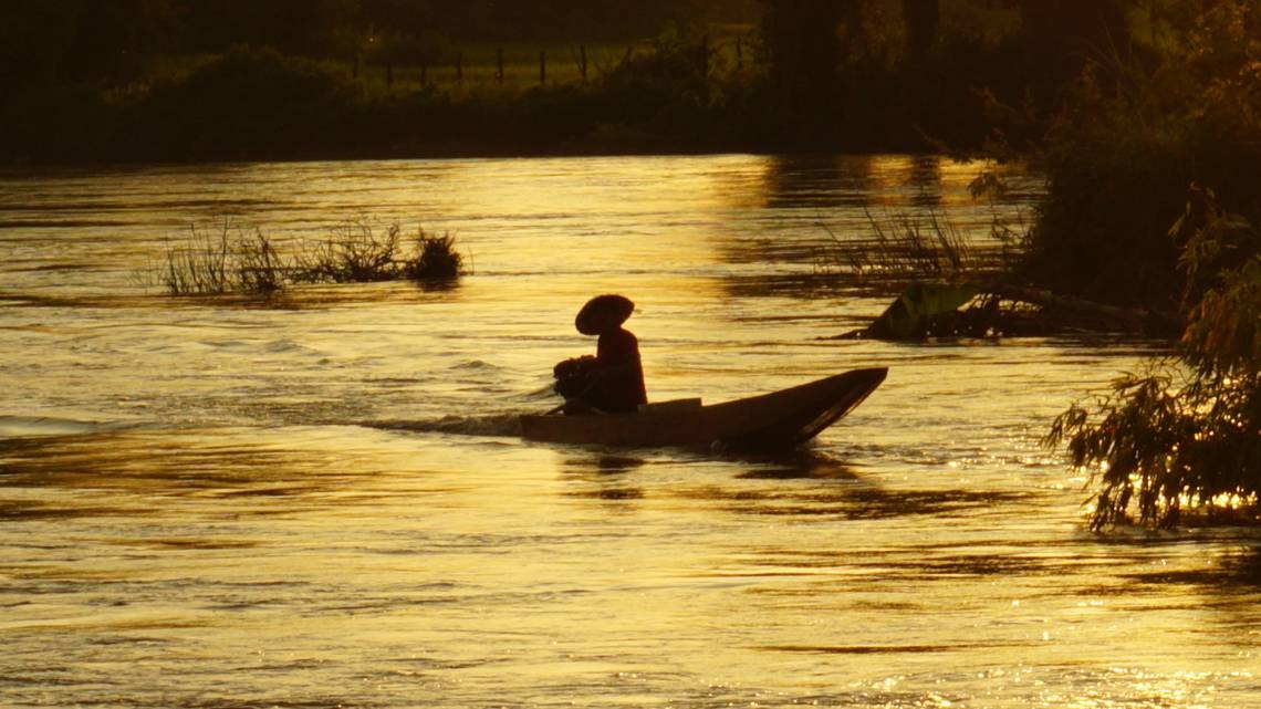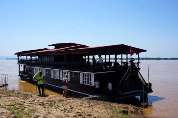 Ganz im Süden des Landes, nahe der Stadt „Pakse“, gingen wir an Bord eines kleinen und luxuriösen Flusskreuzfahrtschiffes und ließen uns 3 Tage lang den Mekong Richtung Süden treiben. Links und rechts zog die Landschaft mit vielen kleinen Dörfern gemächlich an uns vorbei, Kinder liefen winkend und rufend am Ufer mit und Wasserbüffel hoben träge ihre Köpfe und schauten uns erstaunt nach.