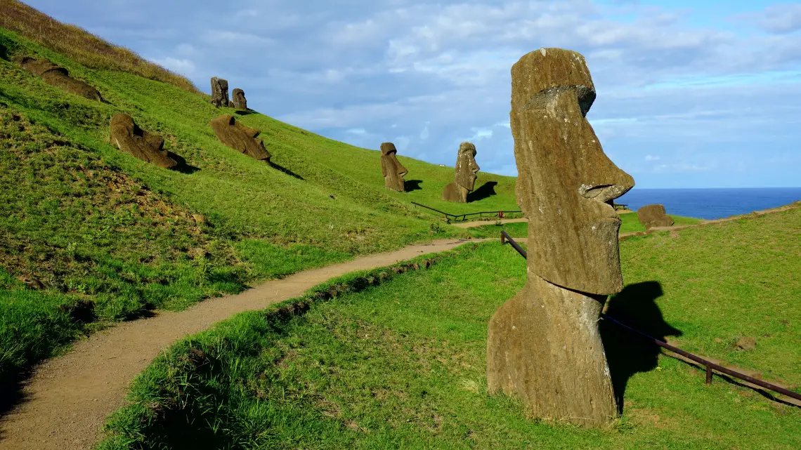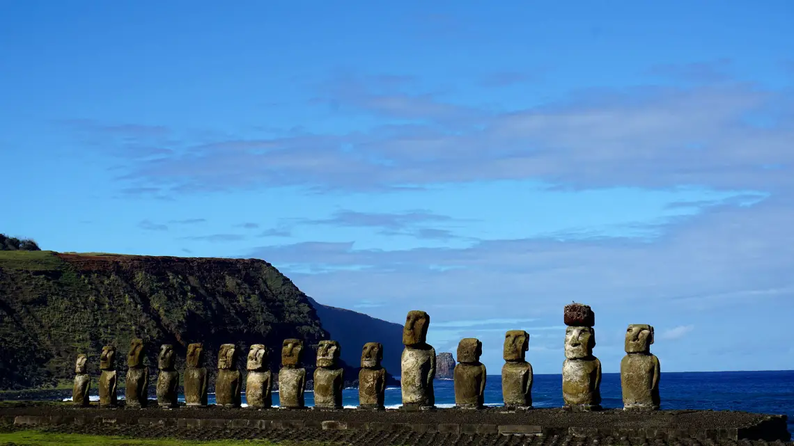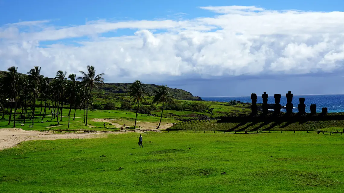 Fast jeder Moai steht auf einem Akivi (Altar) und die Frage, wie diese massiven Steinstatuen auf diese Altare gekommen sind, ist bis heute nicht eindeutig geklärt, denn sie wurden an einem Ort auf der Insel aus Stein gemeißelt und auf vielen verschiedenen Plätzen auf der Insel verbreitet. Alle Moais schauen ins Landesinnere, bis auf die 5 Ahu Akivi, die aufs Meer hinausschauen.