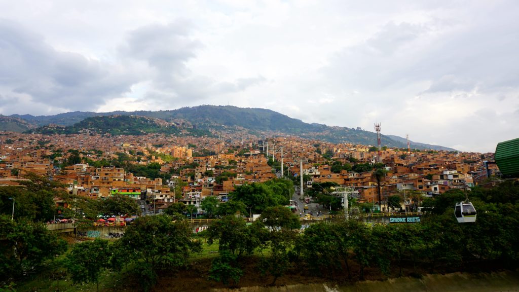 Um uns eine 19-stündige Busfahrt zu sparen, buchten wir einen Inlandsflug nach Medellin, das jahrelang als Synonym für Drogenkrieg galt. Gewalt und Verbrechen hielten Touristen für lange Zeit fern, doch in den letzten Jahren, nach der Wende, hat sich die Stadt gemausert und viele zwielichtige Plätze wurden in helle und freundliche Gegenden verwandelt. Man redet von der bemerkenswertesten Kehrtwende aller Zeiten. Die Entwicklungshilfeorganisation „Urban Land Institute“ verlieh Medellin 2013 sogar den Preis „innovativste Stadt der Welt“ (sogar vor New York und Tel Aviv). So düsten wir mit dem übersichtlichen Hochbahnsystem mehrmals durch die Stadt und ließen uns bei einer „free walking tour“ spannende Geschichten über die einst gefährlichste Stadt der Welt erzählen. Heute wird die Stadt von jungen Leuten aus aller Welt für ihr Sprachstudium besucht.