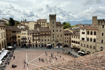 Nach dem Frühstück fahren wir nach Arezzo, eine Stadt mit reichem etruskischem Erbe und beeindruckender Renaissance-Architektur. Besonders sehenswert sind die Kirche San Francesco mit den Fresken von Piero della Francesca und die Piazza Grande mit ihren schiefen Pflastersteinen. Ein Highlight ist zudem der wunderschöne Ausblick vom Glockenturm des Palazzo della Fraternita dei Laici.