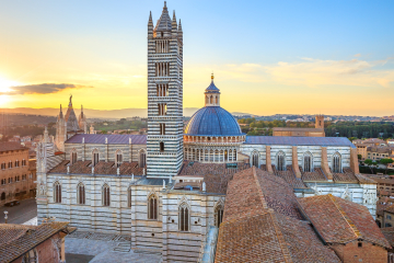 Am frühen Nachmittag erreichen wir Siena, das Herz der südlichen Toskana. Schon bei der Anfahrt zeigt sich die Stadt von ihrer schönsten Seite: auf drei Hügeln thronend, umgeben von Stadtmauern und mit einer Altstadt, die zum UNESCO-Weltkulturerbe zählt. Nachdem wir unser Quartier bezogen haben, bleibt noch genug Zeit für einen ersten Spaziergang durch die engen Gassen. Wir schlendern über die Piazza del Campo, den berühmten Hauptplatz, auf dem zweimal im Jahr das spektakuläre Pferderennen "Palio di Siena" stattfindet. Wir lassen die Stimmung am Hauptplatz auf uns wirken, setzen uns in eines der zahlreichen Lokale, die den Platz einrahmen, nieder und genießen die frühsommerliche Atmosphäre.