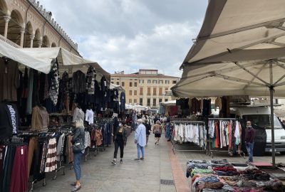 Auch dafür blieb Zeit: Ein Ausflug nach Padua. Nach knapp 25 min Fahrt hatten wir unser Auto in der Stadt geparkt. Wohin jetzt? Wir hatten vom berühmten „Petrocchi“-Café gehört. Schnell in Google Maps eingegeben schlug es uns die Route in sieben Gehminuten vor. Das war das Ziel. Wir hatten aber nicht bedacht, dass wir dazwischen bei zahlreichen Luxushops vorbeikommen, Window-Shopping at its best! Auch eine kleine Kirche und ihr wunderschöner Vorplatz kreuzten unseren Weg, bis wir im berühmten Café angekommen waren. Und es hielt, was es versprach: Eine gemütliche Terrasse und ein umwerfender Petrocchi Kaffee mit Minze rundeten unseren ersten Stopp ab. Gemütlich schlenderten wir weiter in Richtung Altstadt, ehe wir uns am samstägigen Markt von Padua wiederfanden. Blumen, Obst und Gemüse, Fisch, Mode, Küchenwaren, Taschen… einfach alles war hier buchstäblich zu erobern. Wir entschieden uns für ein regionales Fiorellini, eine Minipizza mit unterschiedlichen Toppings. Einfach wunderbar! Und so verbrachten wir einen tollen Vormittag in Padua, eine lebendige und von Kultur geprägte Stadt, die einfach das Herz Italiens widerspiegelt.
