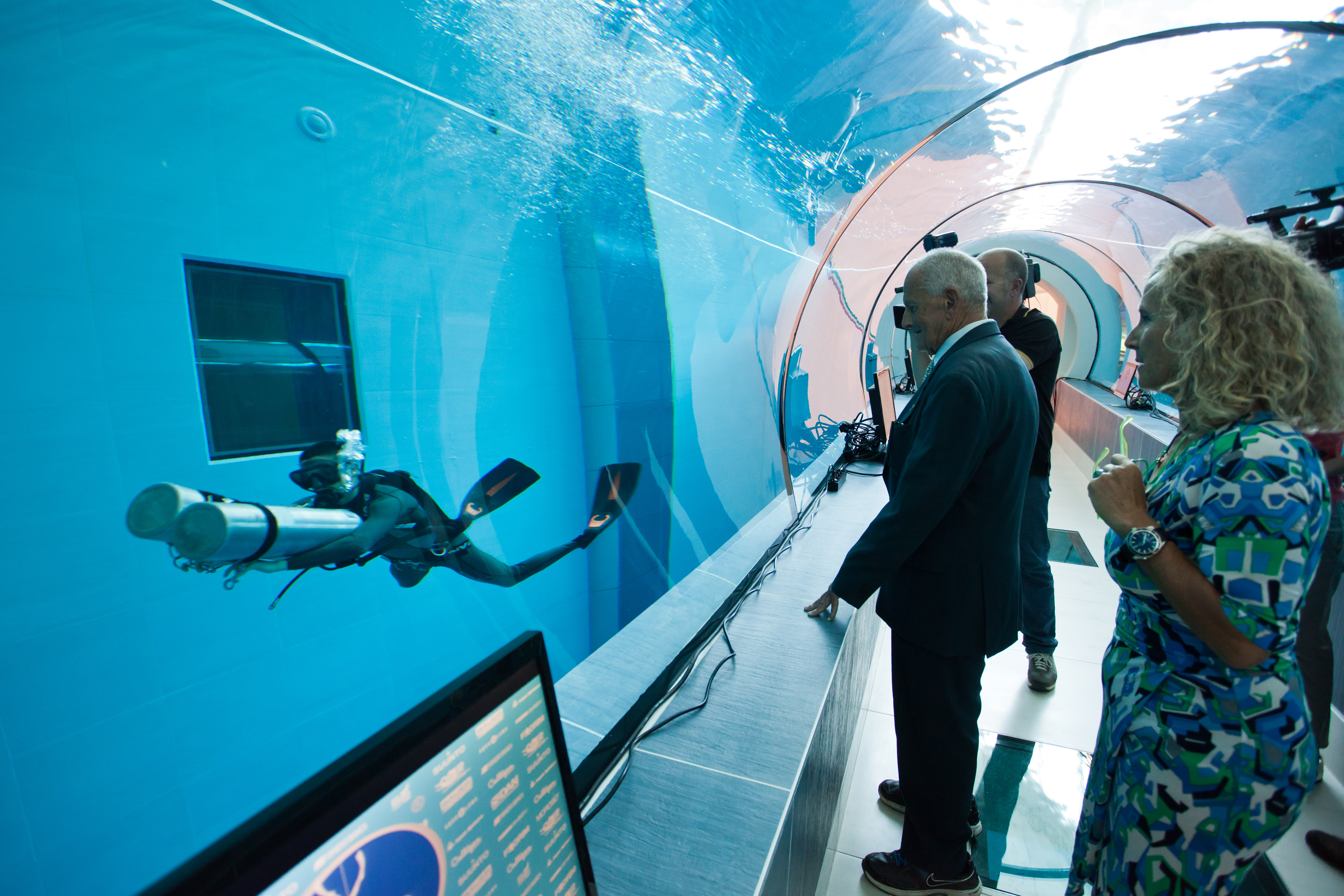 Alleinig der Gang durch den verglasten Tunnel, der sich in fünf Metern Wassertiefe befindet, ist eine unglaubliche Erfahrung. Über einem, unter einem, neben einem - egal wohin man schaut, überall sind Taucherinnen zu sehen. Zu meinem Glück nahm gerade eine Gruppe Rettungsschwimmer an einem Kurs teil – ich war beeindruckt, wie ruhig und lange sie ohne Sauerstoff unter Wasser bleiben können. Anschließend hatte ich noch das Vergnügen, die Scuba Diver zu beobachten, wobei man hier nicht viel sieht außer tausende kleine Luftbläschen, die um einen herumtanzen – vor allem im oben genannten Tunnel ein wahres Schauspiel!