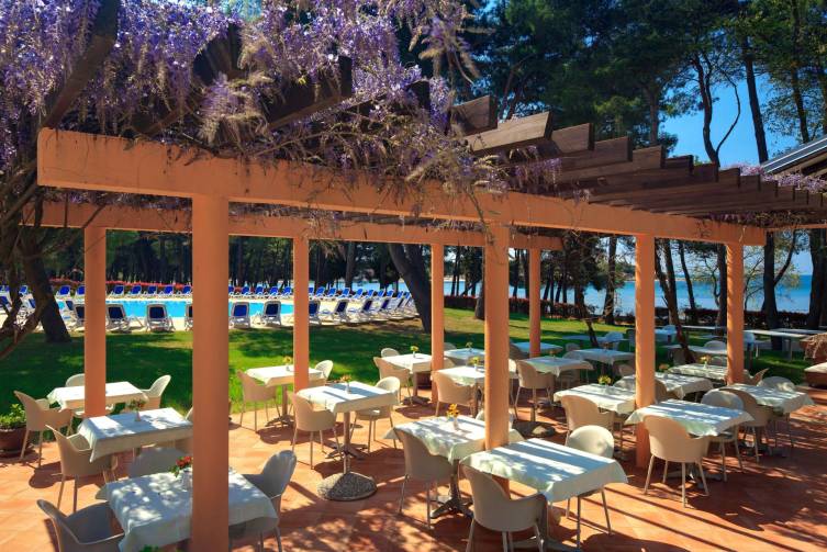 ruhig am Ortsende von Umag, ca. 4 km ins Zentrum, mit Bummelzug oder Leih-Fahrrädern erreichbar.