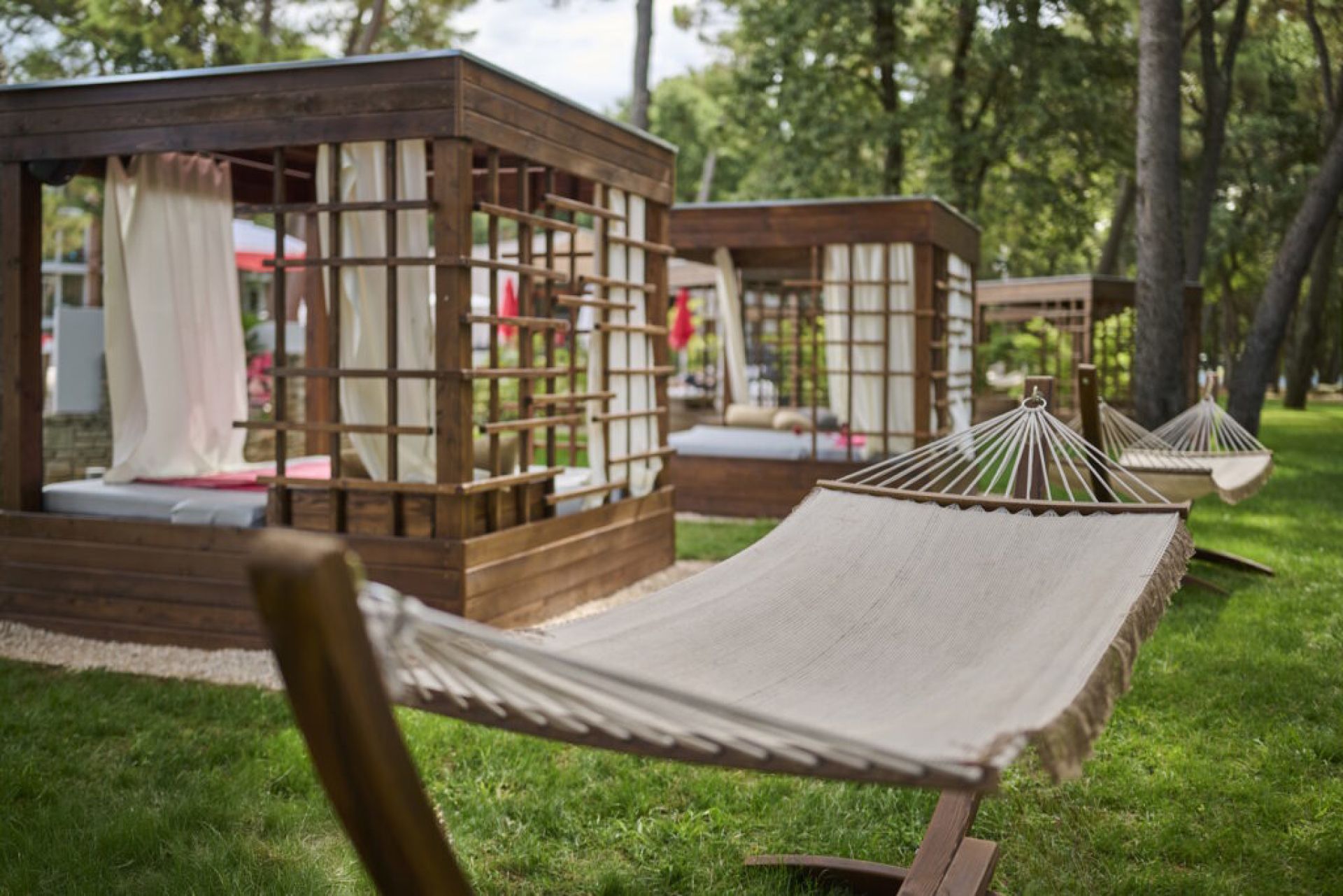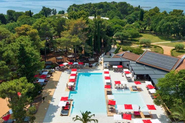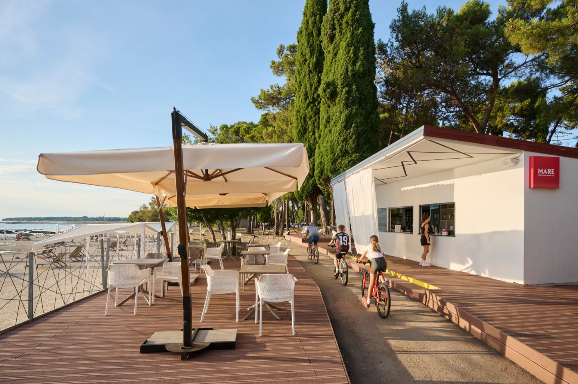 in einem Pinienwald, 3 km von Umag entfernt; Umag ist mit dem Bummelzug (Haltestelle direkt vor dem Hotel) erreichbar.