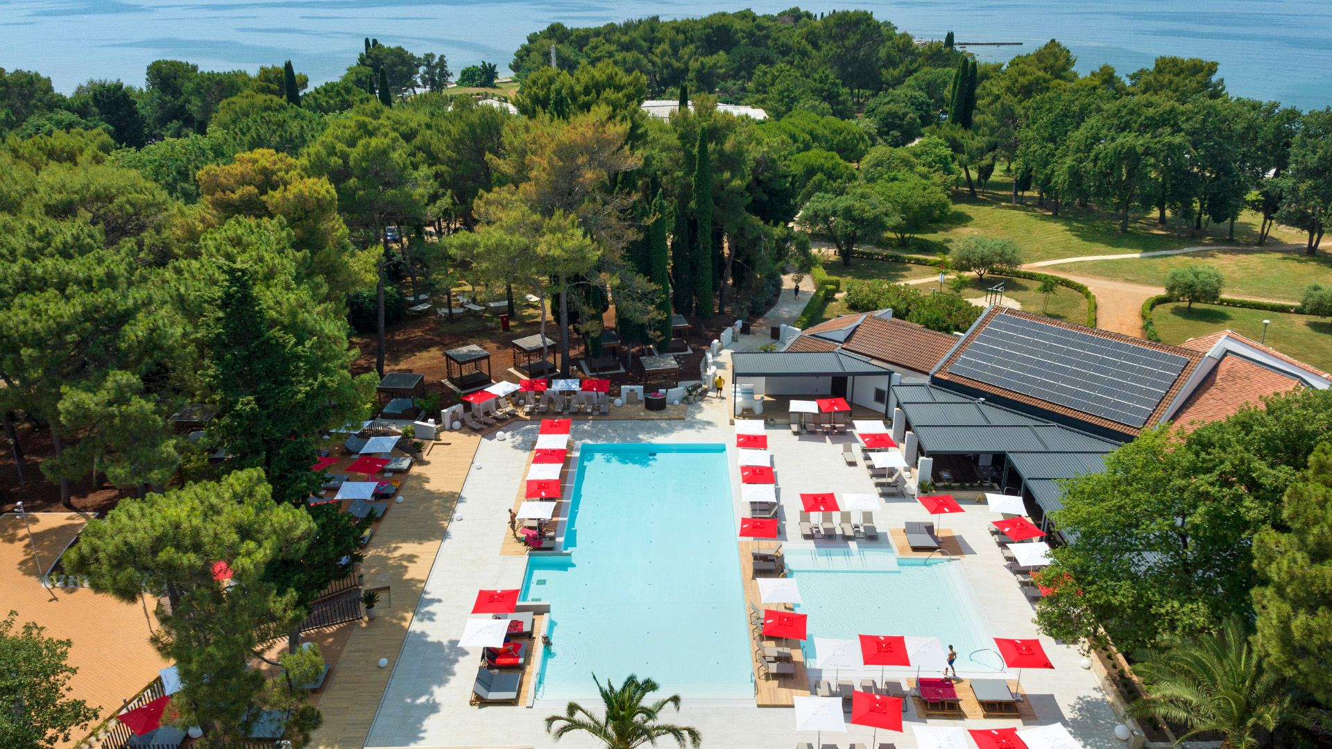 Das renovierte Hotel befindet sich an einer prominenten Lage in Katoro, direkt am Meer und eingebettet in einen malerischen Pinienwald. Es trägt den Namen des Schutzpatrons der Stadt Umag und fügt sich harmonisch in die Umgebung ein. Mit seinem einzigartigen Design und vielfältigen Angeboten schafft es eine perfekte Balance zwischen aktivem Urlaub und entspannender Erholung - ideal für Reisende, die beides suchen.