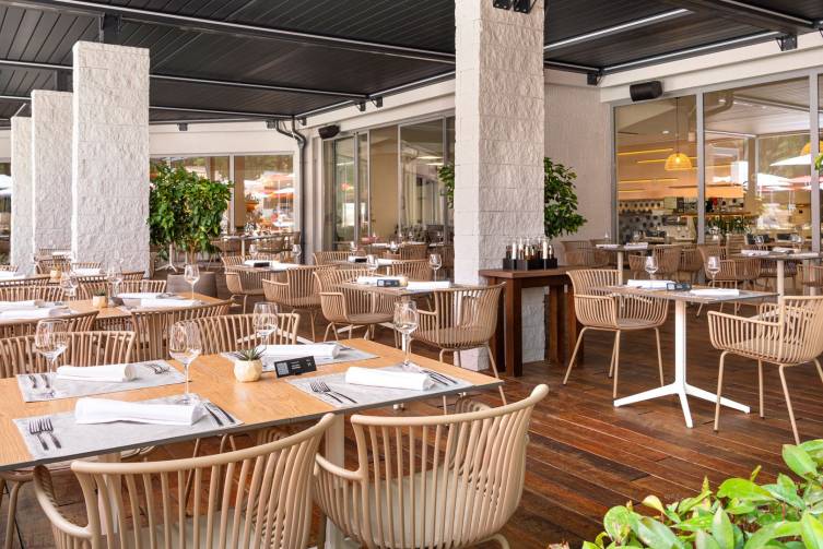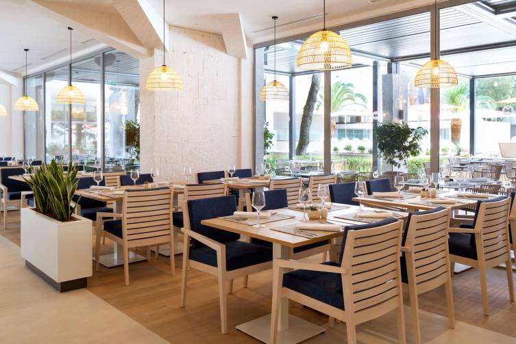 Rezeption, Lobby, Bar, Beachbar, Friseur, Internet-Ecke, à-la-carte Restaurant „Taverna Mediteran“, Parkplatz (€ 1,-/Tag), W-Lan kostenlos, E-Auto Ladestation.