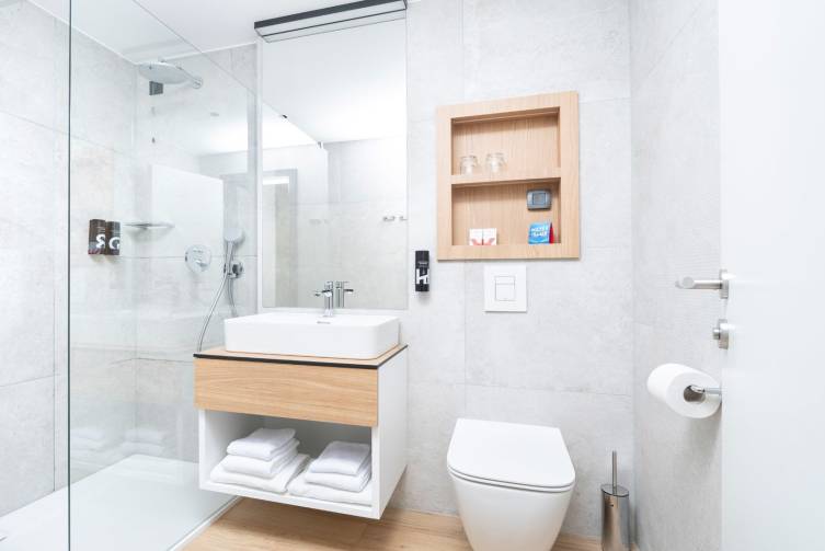 Doppelzimmer mit Dusche/WC, Föhn, Klimaanlage, Telefon, LCD-TV, Minibar (gegen Gebühr), Safe, zur Parkseite, ca. 21 m²;