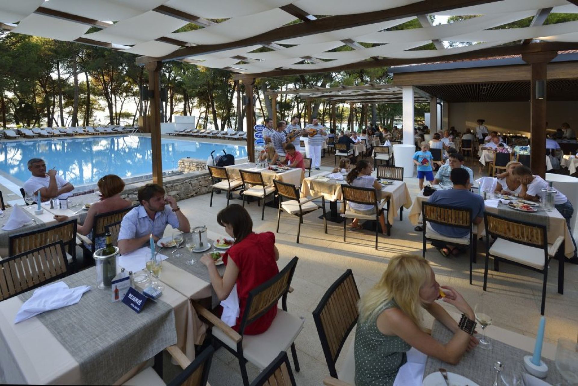 2-stöckig, TV-Raum, Souvenirgeschäft mit Zeitschriften, Fahrrad-Abstellraum, Wäsche-Service (gegen Gebühr), E-Ladestation für Fahrräder, W-Lan kostenlos, Parkplatz in der Nähe (ca. € 1,-/Tag), Salzwasserpool, Pool, Liegen am Pool inkl. (begrenzte Anzahl), Restaurant, Aperitif-Bar, Cafébar, Konferenzraum mit 70 Plätzen.