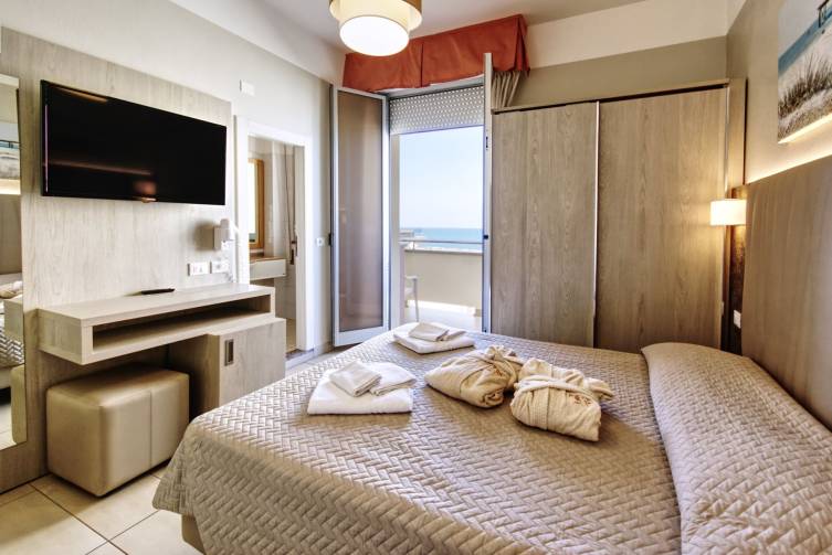 Doppelzimmer Superior Bellavita renoviert, im 2.-6. Stock, Bad mit Dusche/WC, Föhn, Telefon, Sat-TV, Klimaanlage, Safe, Kühlschrank (Wasser inkl.), Balkon mit Meer- oder Poolblick; :