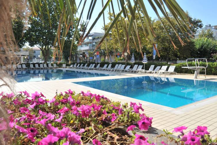 7-stöckig; bestehend aus 2 Gebäuden, klimatisiertes Restaurant, Bar, Fernsehraum mit Sat-TV, 3 Lifte, Sonnenterrasse mit 3 Pools (Tiefbecken mit Sprungbrett (7 m x 7 m), Kinderpool (4 m x 3 m) und Swimmingpool (18 m x 8 m), Parkplatz und W-Lan kostenlos. CIN: IT040016A1P6NR9KLP
