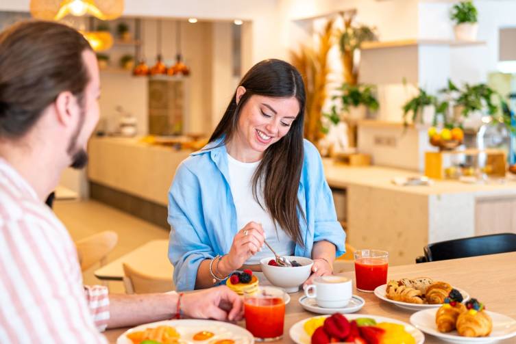 Halbpension: umfangreiches Frühstücksbuffet von 07:30 bis 11:00 Uhr, Abendessen im Restaurant in Buffetform mit Vorspeisen, regionalen Spezialitäten und hausgemachten Desserts; teilweise live Show-Cooking am Abend; glutenfreie Speisen auf Anfrage möglich; Mittagessen kann im Hotelbistro à-la-carte bestellt werden.