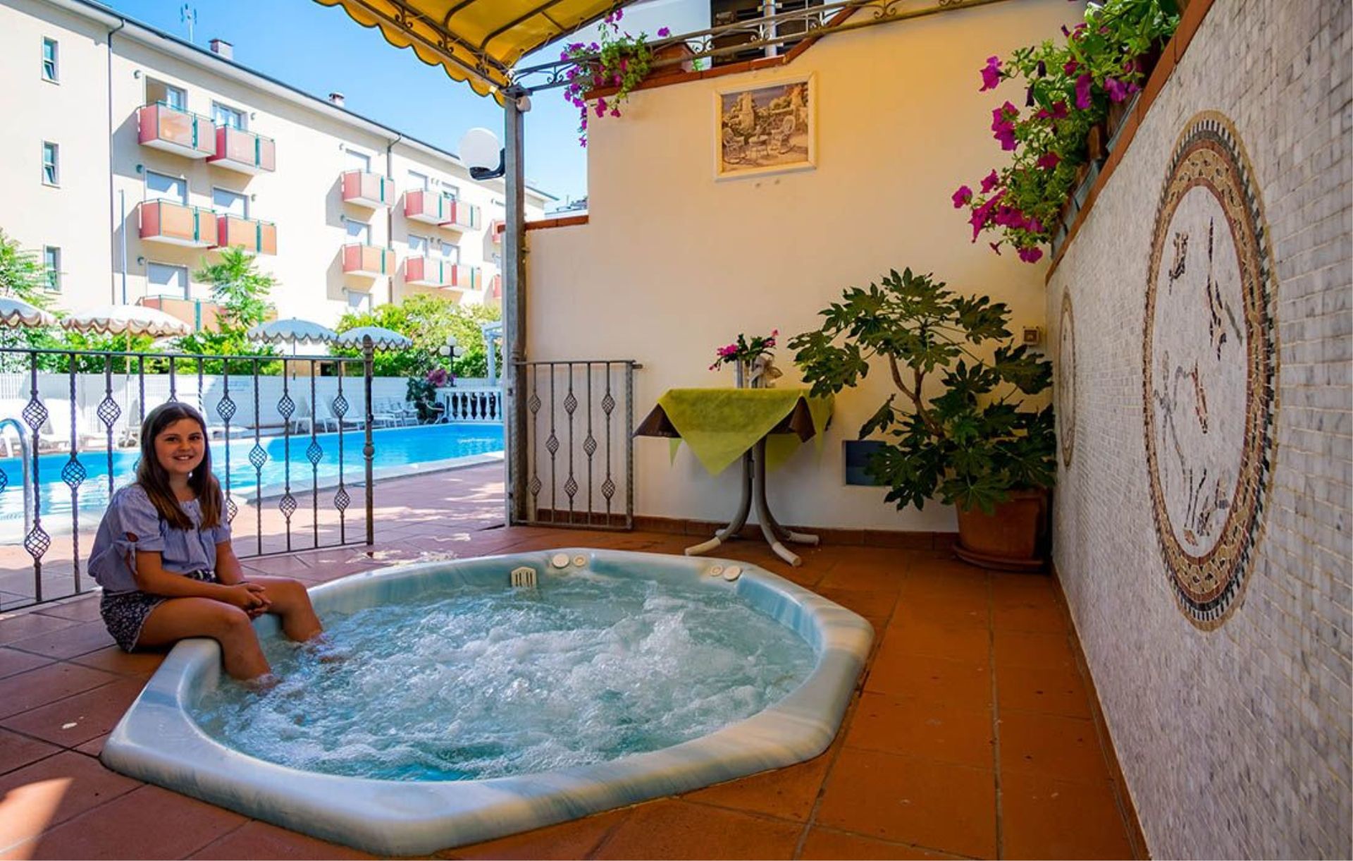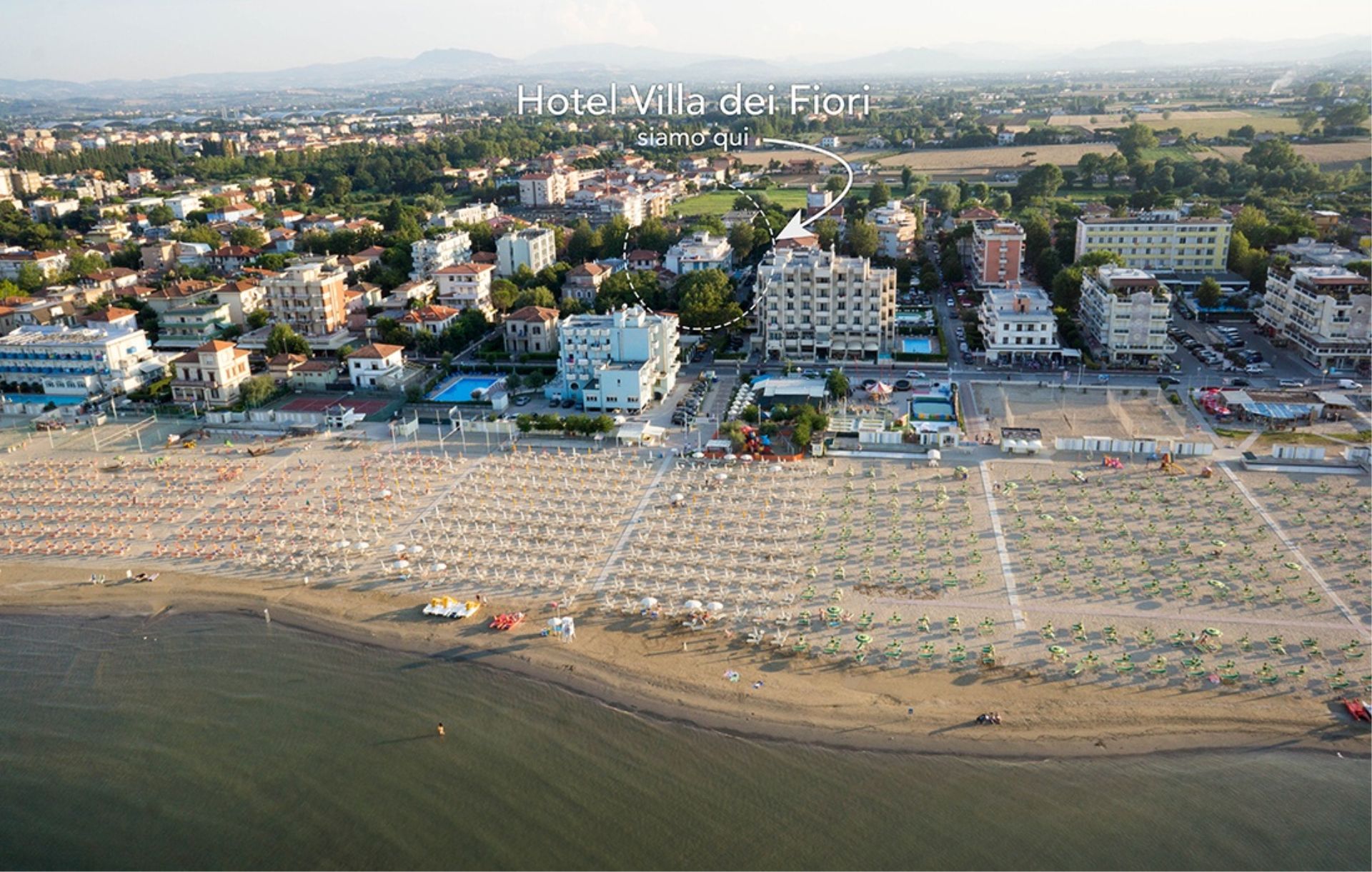 in einer ruhigen Seitenstraße der Küstenpromenade; gute Busverbindung ins Zentrum von Rimini (ca. 5 km) und Bellaria (ca. 5 km); in der Nähe einige Bars und Restaurants.