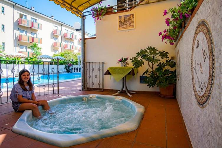 4-stöckig; Restaurant, Bar, Aufenthaltsraum, Fernsehraum, Lift, Sonnenterrasse, Pool, Liegen und Sonnenschirme unter den Pinien, Parkplatz und W-Lan kostenlos. CIN: IT099014A147D8JEL9
