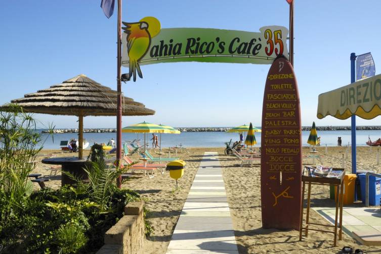 Kinderspielplatz, Leih-Fahrräder nach Verfügbarkeit, zahlreiche Sportmöglichkeiten und Kinderanimation am Strand von Viserbella.