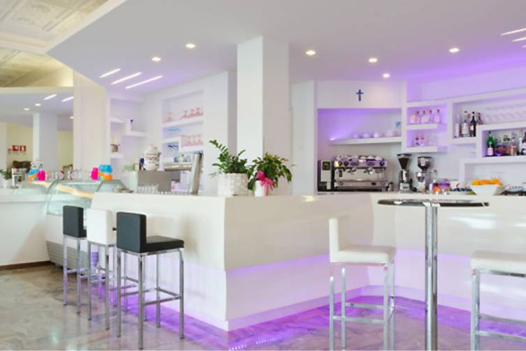 4-stöckig, Restaurant mit Meerblick, Bar, Aufenthaltsraum, Fernsehraum mit Sat-TV, Lift, Sonnenterrasse, Animation für Kinder am Strand, Parkplatz und W-Lan kostenlos. CIN: IT027005A15S9ESYNG