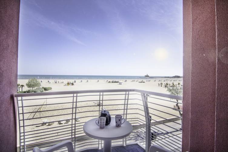 direkt am „Spiaggia di Levante“; Sonnenschirm und 2 Liegen pro Zimmer inklusive.