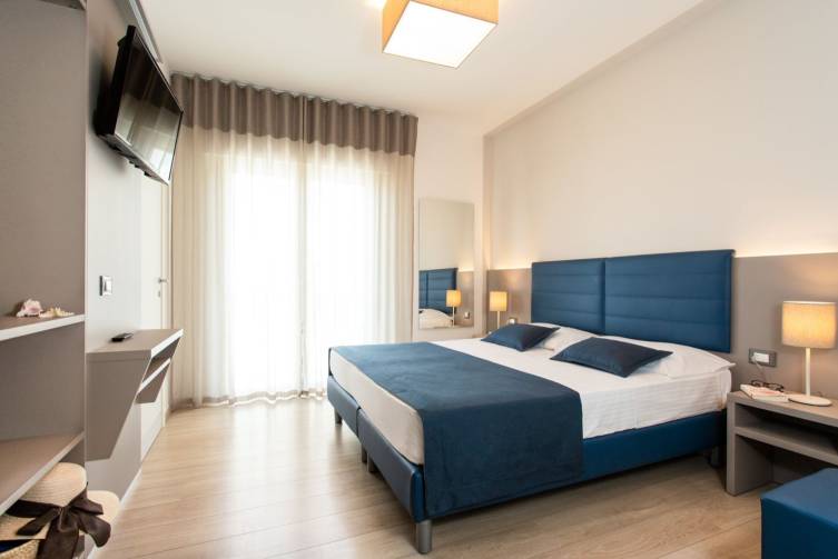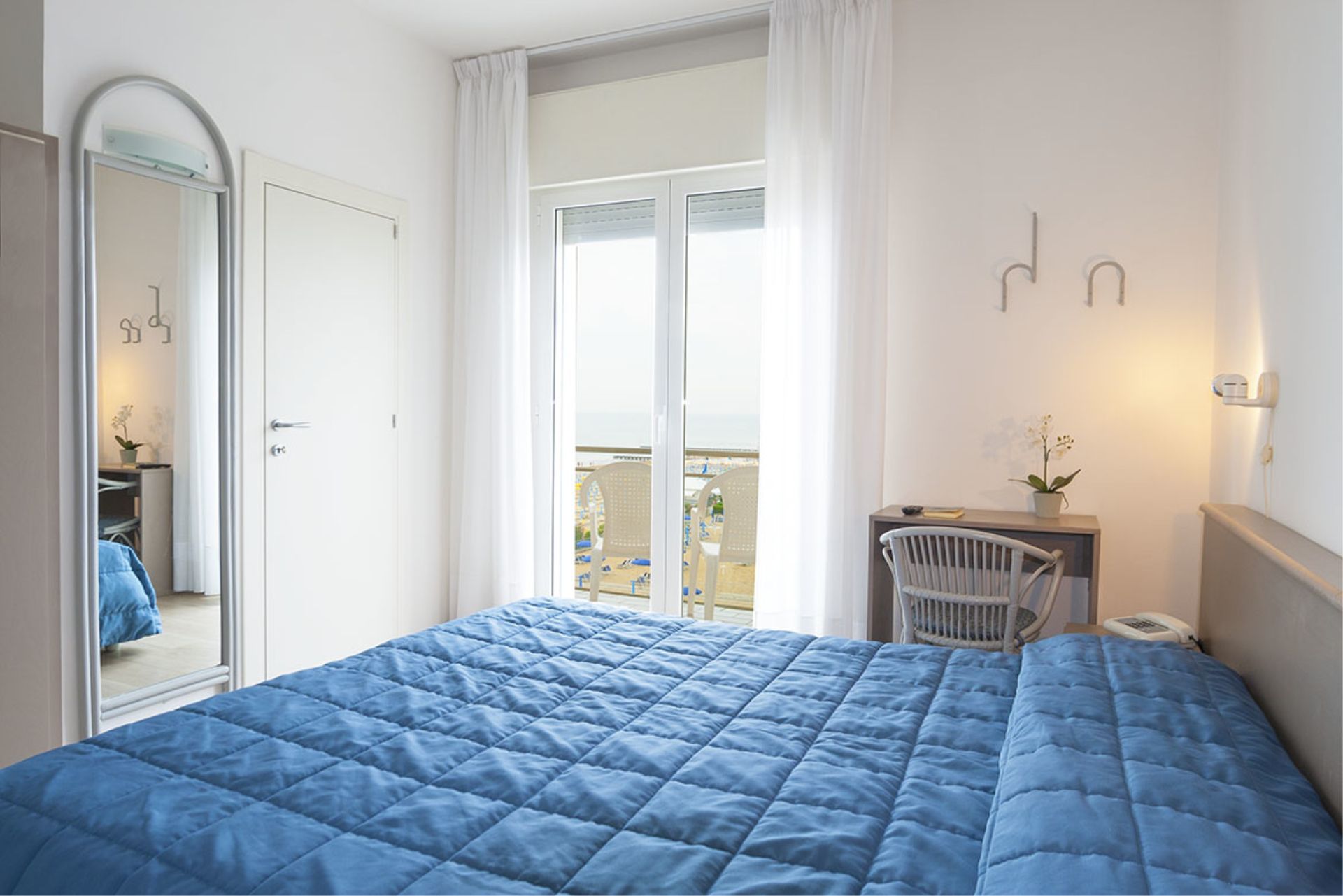 Doppelzimmer Standard mit Dusche/WC, Föhn, Klimaanlage, Telefon, Sat-TV, Safe, teilweise Balkon mit seitlichem Meerblick, ca. 15 m²;