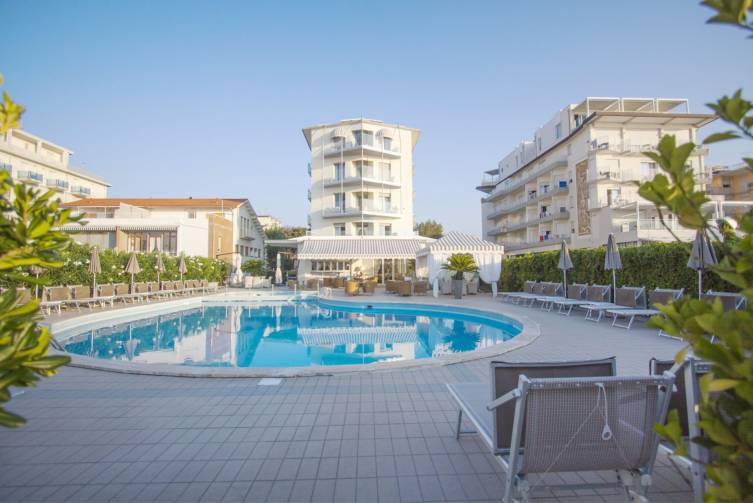 4-stöckig, Rezeption, Restaurant, Bar, Aufenthaltsraum, Terrasse mit Meerblick, Pool mit Kinderbecken, Liegen am Pool € 8,- p.P./Tag, Lift, Privatparkplatz nach Verfügbarkeit und W-Lan kostenlos. CIN: IT027019A18IXG7IM4