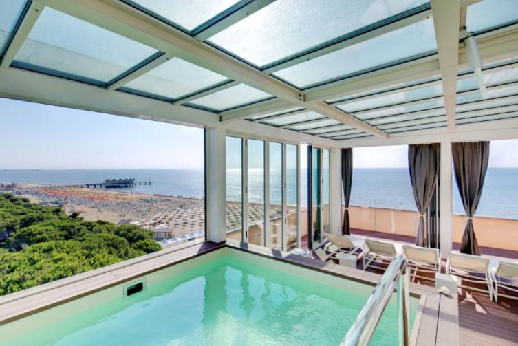 8-stöckig, Rezeption, Lift, heller Frühstücksraum, Spielbereich, Wellnessbereich, Panorama-Innenpool mit Sonnenterrasse (beheizt, 30 °C), Fernsehraum mit Sky-TV, überdachte Veranda, klimatisiertes Restaurant, Parkplatz (begrenzte Anzahl) und W-Lan kostenlos. CIN: IT030049A1GJ3ZYILZ