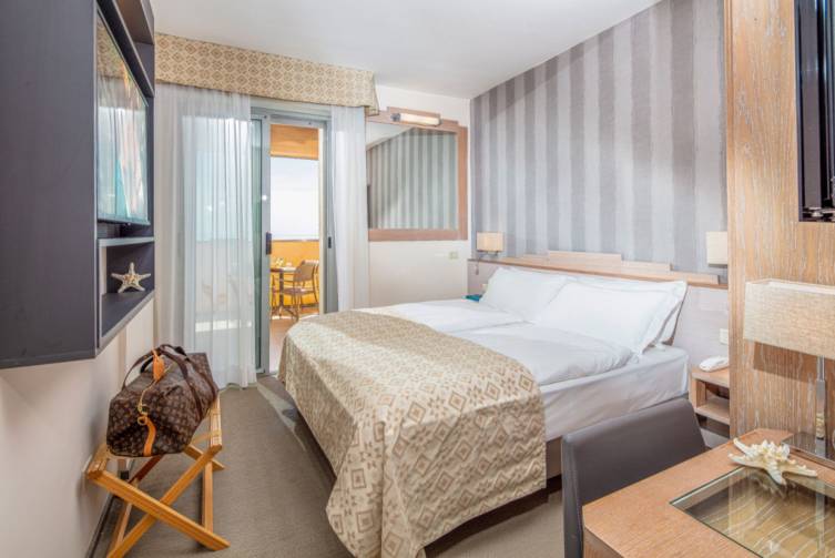 Doppelzimmer Classic mit modernen hellen Möbeln, Sat-TV, Dusche/WC, Föhn, Klimaanlage/ Heizung, Balkon, Minibar, Safe, Telefon;