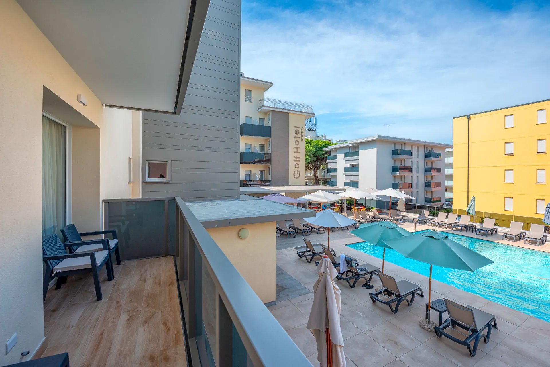 Das Hotel Golf bietet eine zentrale Lage nahe dem Strand und überzeugt mit familiärer Atmosphäre. Gäste genießen komfortable Zimmer, einen gepflegten Poolbereich und ein abwechslungsreiches Frühstück. Ideal für Erholung und Aktivurlaub.