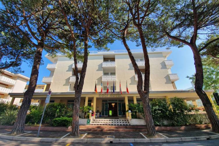 3-stöckig, Rezeption, Restaurant, Bar, Aufenthaltsraum, Fernsehraum, Lift, beheizter Pool mit Whirlpool, Poolbar, Parkplatz und W-Lan kostenlos. CIN: IT027034A1BFVBS8XO