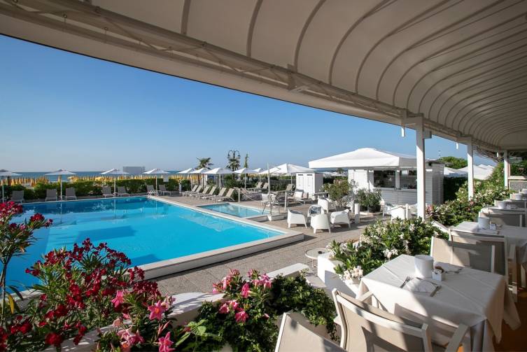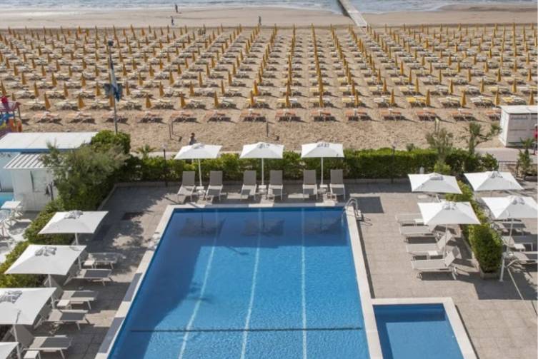 Das renovierte 3-Sterne Hotel zeichnet sich durch die exzellente Küche und das gemütliche Ambiente aus. Weiters punktet es vor allem durch seine TOP-Lage: direkt am Strand, zentral an der Piazza Mazzini und in der Nähe des bekannten New Jesolandia und Wasserparks „Caribe Bay“.