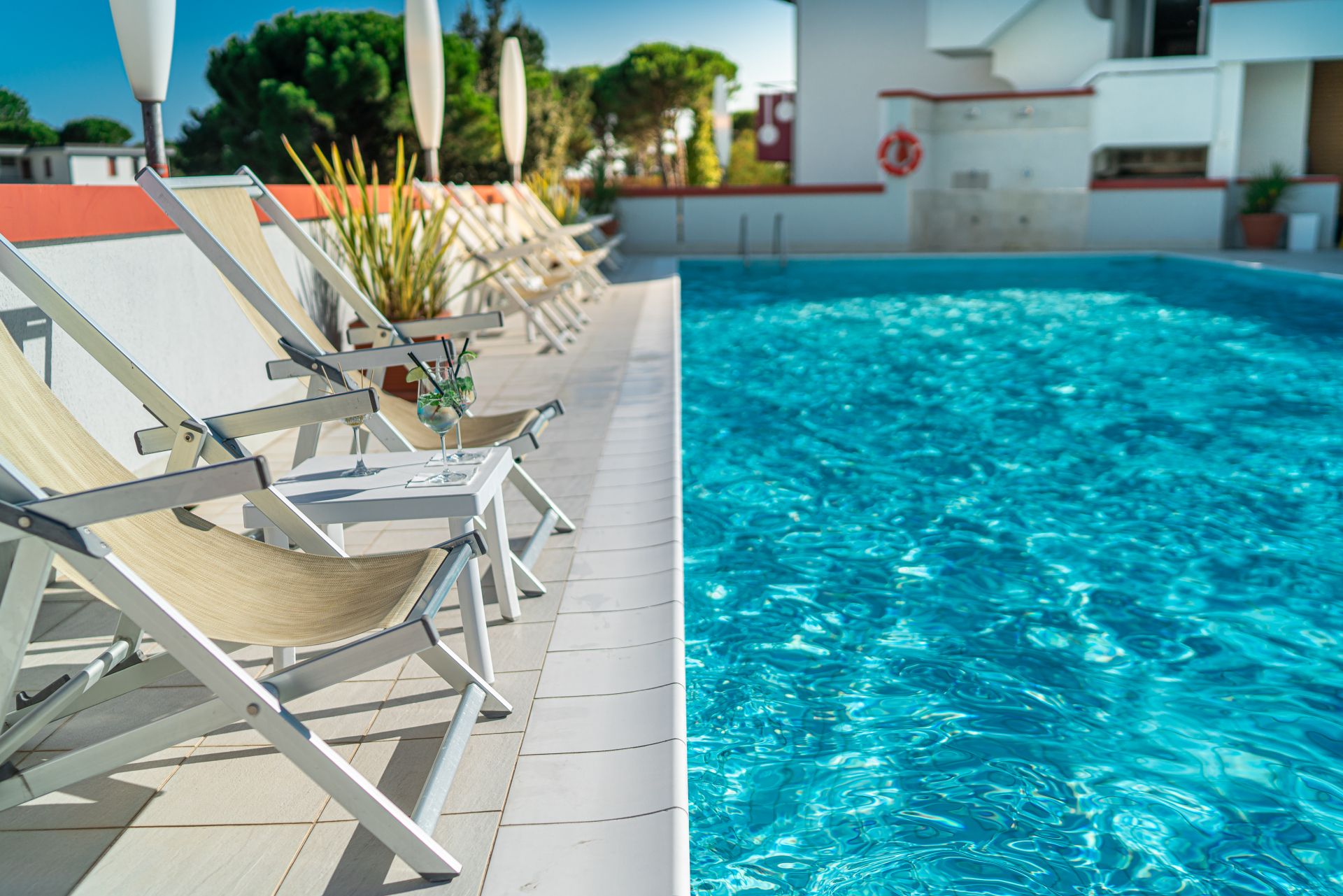 im Zentrum des etwas ruhigeren Ortsteils Bibione Pineda mit Restaurants, Bars und Unterhaltungsmöglichkeiten; nach Bibione Spiaggia etwa 15 min. mit dem Fahrrad oder man nimmt den öffentlichen Bus.