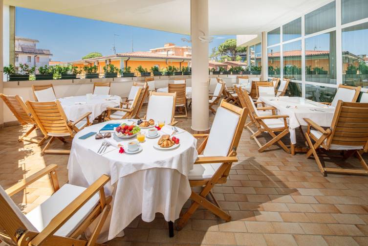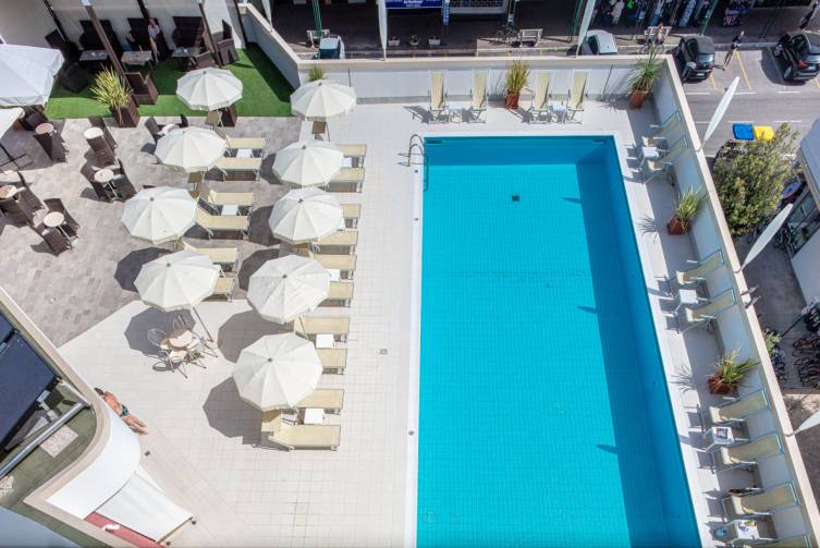 5-stöckig, Rezeption, Speisesaal, Lift, Kinderspielraum, Terrasse, Pool (Schirme und Liegen nach Verfügbarkeit), Poolbar, Whirlpool, kleine Fitnessecke, Garten, Parkplatz und W-Lan kostenlos. CIN: IT027034A1LDF5LRV6
