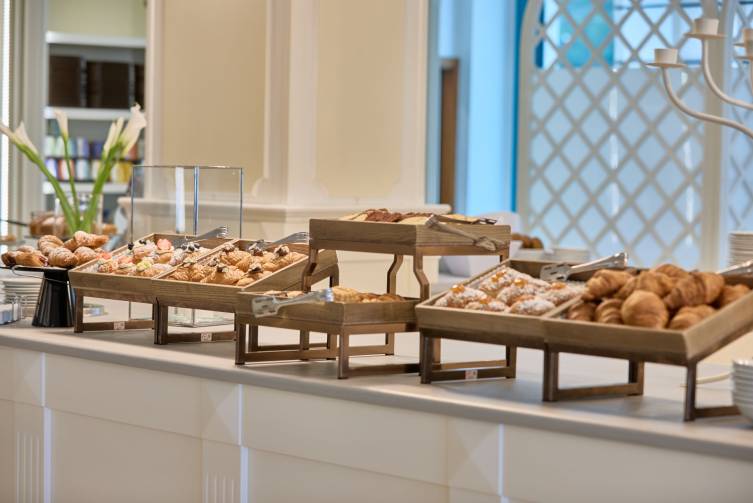 Frühstück, Halbpension: Frühstücksbuffet auf der Terrasse mit Meerblick, Mittagessen gegen Gebühr im Restaurant und an der Snackbar auf der Terrasse möglich, Abendessen im Speisesaal.
