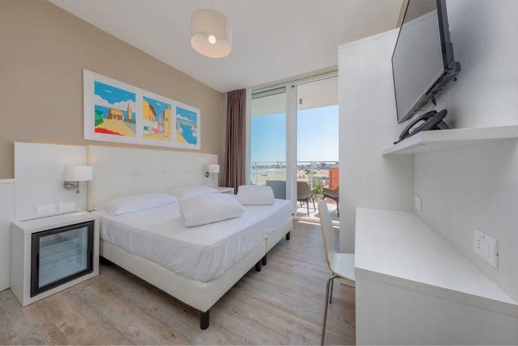 Doppelzimmer Mare Classic mit Dusche/WC, King-Size Bett, Klimaanlage, Minibar, Safe, Sat-TV, Telefon, Balkon, seitlicher Meerblick, ca. 18 m²;