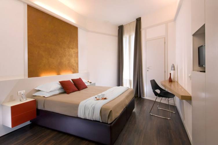 Doppelzimmer modern, geräumig und komfortabel eingerichtet; Klimaanlage, Balkon, Minikühlschrank, Bad mit Dusche/WC, Föhn, Telefon, TV, Safe, W-Lan, ca. 13 m