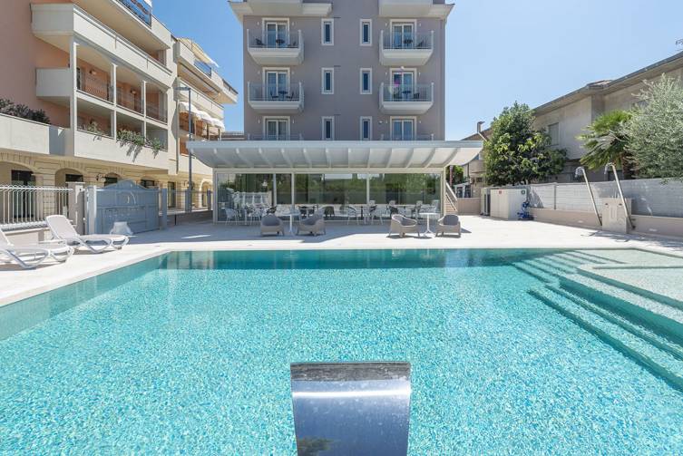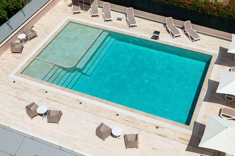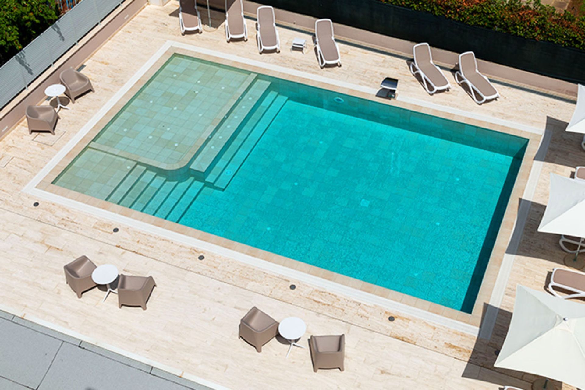 Rezeption, Loungebar, sonnige Terrasse mit Poolblick, Lift, Frühstücksraum, Pool mit Liegen und Sonnenschirmen, Ladestation für Elektrofahrzeuge, Wäsche- und Bügelservice (gegen Gebühr), Shuttleservice (gegen Gebühr), Parkplatz € 10,-/Tag, W-Lan kostenlos. CIN: IT067044A1TC3VV39G