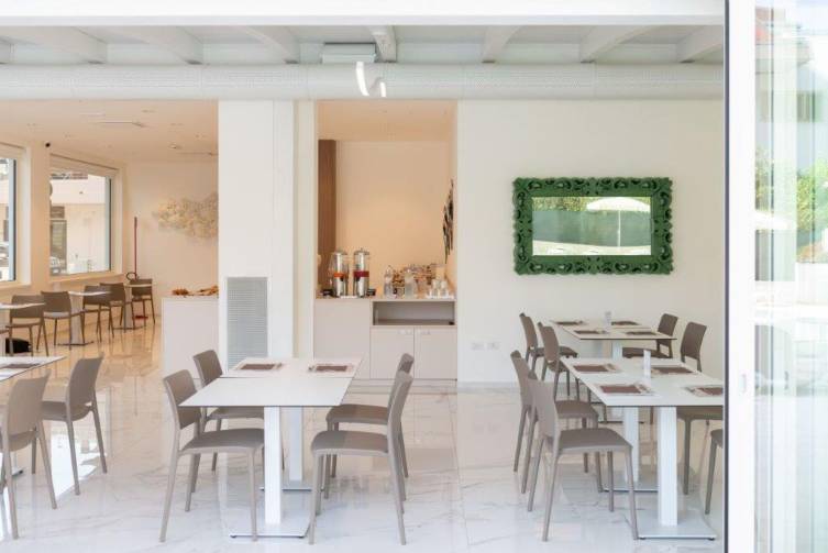 Frühstück: bis 11:00 Uhr herzhaftes Buffet im hellen Frühstücksraum oder auf der sonnigen Terrasse; abwechslungsreiche Auswahl an frischen und regionalen Produkten: hausgemachte Kuchen, Torten, Muffins, typische lokale Aufschnitte, Käse, hausgemachtes Brot, Toast, Omlettes, Eier, Pfannkuchen, typische Süßspeisen aus den Abruzzen, verschiedene Aufstriche, frisches Obst, Joghurt; auf Anfrage laktosefreies, glutenfreies, veganes oder zuckerfreies Frühstück möglich; Mittagessen auf Anfrage an der gemütlichen Strandbar möglich.