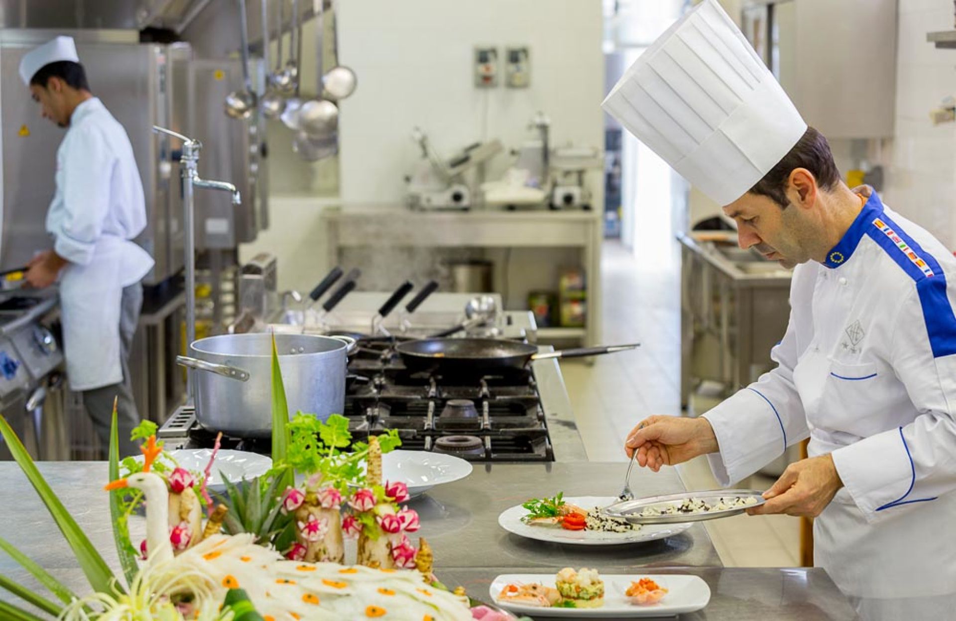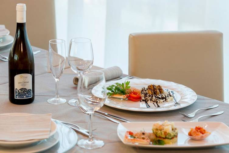 Vollpension: Frühstücksbuffet im hellen Speisesaal mit Meerblick; Mittag- und Abendessen mit Wahlmenü; Beilagen- und Gemüsebuffet; Speisesaal öffnet 20 Minuten früher für Kinder; glutenfreie Menüs oder Diätküche auf Anfrage.
