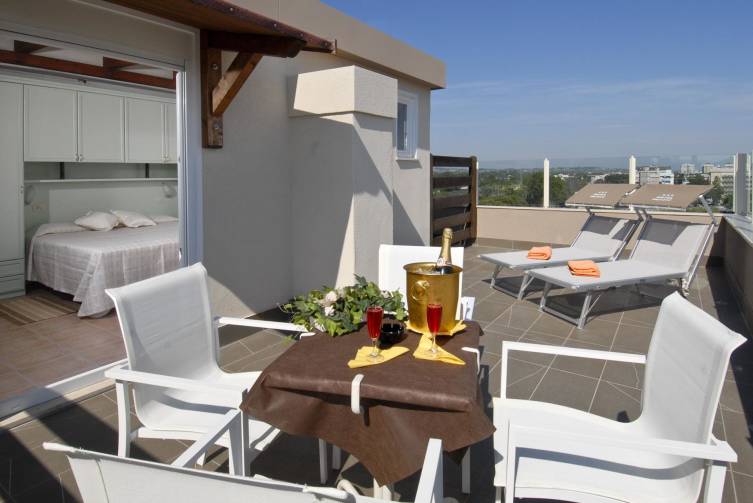 7-stöckig, familiengeführtes Hotel, gepflegter Garten, 24-h Rezeption, 24-h Bar, Restaurant, Terrasse, Lift, Frühstücksraum mit Poolblick, Aufenthalts- und Fernsehraum mit Bar, Pool mit Liegen und Sonnenschirme, Kinderpool, Parkplatz und W-Lan kostenlos. CIN: IT099002A1RDC76RQC