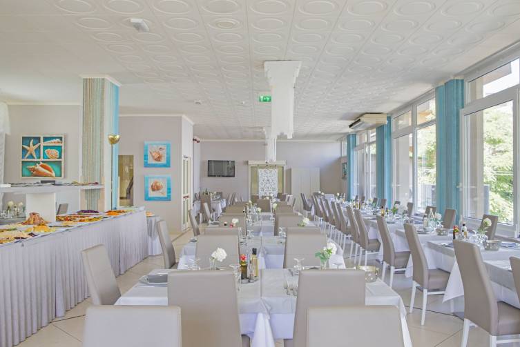 Frühstück, Halbpension, Vollpension: reichhaltiges Frühstücksbuffet, mittags und abends Wahlmenü, italienische und internationale Gerichte mit Fleisch und Fisch, umfangreiches Gemüse- und Salatbuffet; Speisen für Allergikerinnen auf Anfrage möglich.