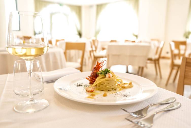 Halbpension, Vollpension: Frühstücksbuffet auf der Terrasse, mittags und abends Wahlmenü mit Gemüsebuffet, ausgezeichnete Küche mit köstlichen Fisch- und Fleischgerichten, auf Nachhaltigkeit & Regionalität wird in der Küche viel Wert gelegt, 1x pro Woche Themenabend, glutenfreie Gerichte & Diätküche auf Anfrage.