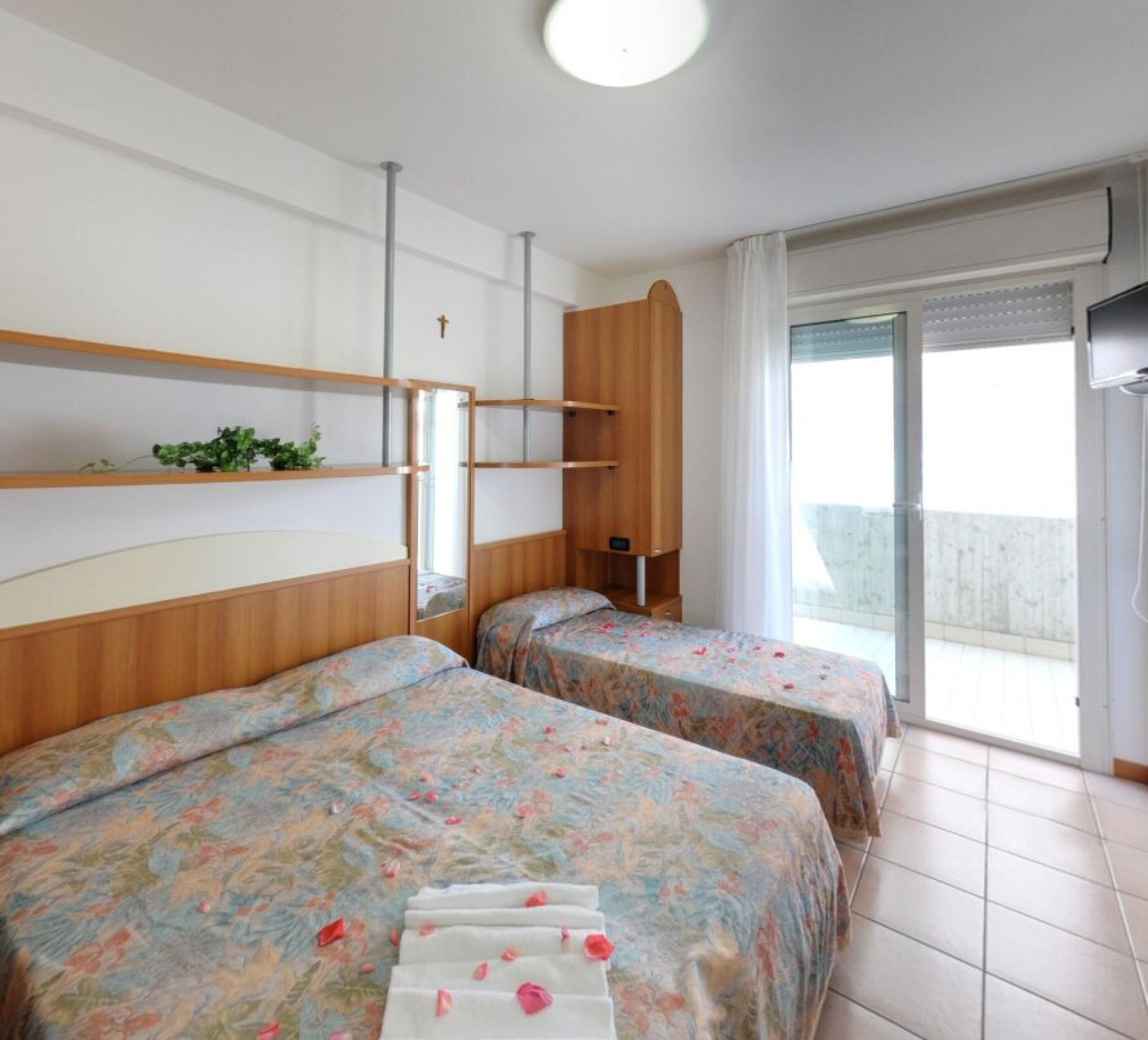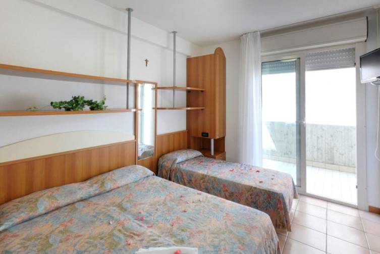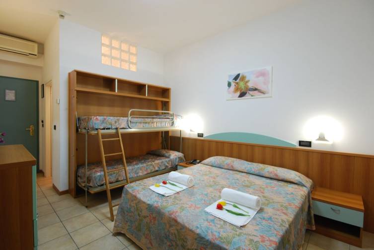 Doppel- und Vierbettzimmer komfortabel eingerichtet, Bad mit Dusche/WC, Föhn, Safe, Minibar, Sat-TV, Klimaanlage, teilweise mit Etagenbetten, mit Balkon, Vierbettzimmer mit Meerblick;