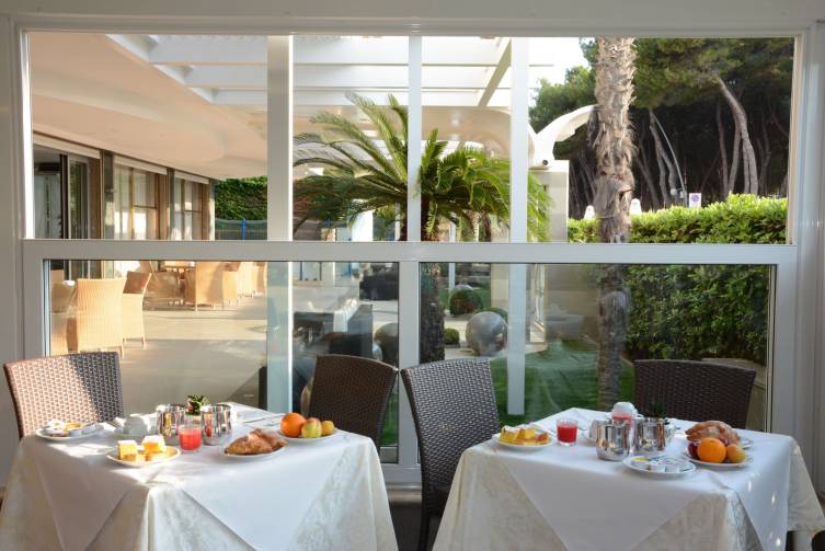 Rezeption, Lift, Restaurant mit Meerblick, Frühstücksraum mit Veranda, Hotelbar, Pool mit Kinderpool, Parkplatz im Freien und Parkgarage kostenlos, W-Lan kostenlos; Hunde € 10,-/Tag, Nebengebäude Dependance: Lift, Terrasse, TV-Raum. (CIN: IT067001A1G2FMMEMX)