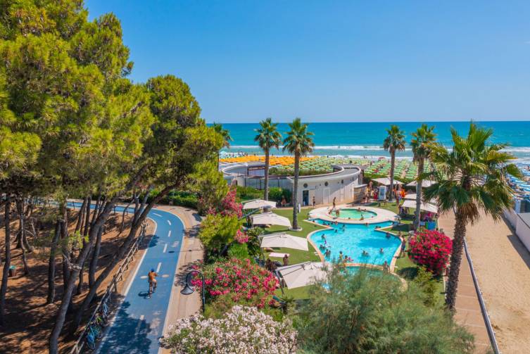kostenlose Leihfahrräder, E-Bikes gegen Gebühr, Sporting Village Beach: große Anlage mit Pools, Liegestühlen und Sitzecken mit Sonnenschirmen, Animationsprogramm für Kinder am Strand und im Hotel, Aqua-Aerobic, Pilates, Gruppentänze für Kinder und Erwachsene, Spinning-Kurse, Miniclub für Kinder von 3 bis 11 Jahren, Juniorclub ab 11 Jahren, Spielplatz, Live-Musik, Hüpfburgen, Beachvolleyballplatz, Tischtennis, Bowlling, Tischfußball; viele Ausflüge vor Ort im Hotel buchbar.