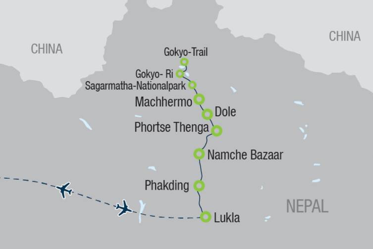 Erleben Sie eine unvergessliche Trekkingreise ins Herz des Himalaya! Die Route führt durch atemberaubende Landschaften, ursprüngliche Sherpa-Dörfer und vorbei an türkisblauen Gletscherseen bis zum Gokyo Ri - mit einzigartigem Blick auf Mount Everest, Lhotse & Makalu. Ein Abenteuer für aktive Natur- und Bergliebhaberinnen!