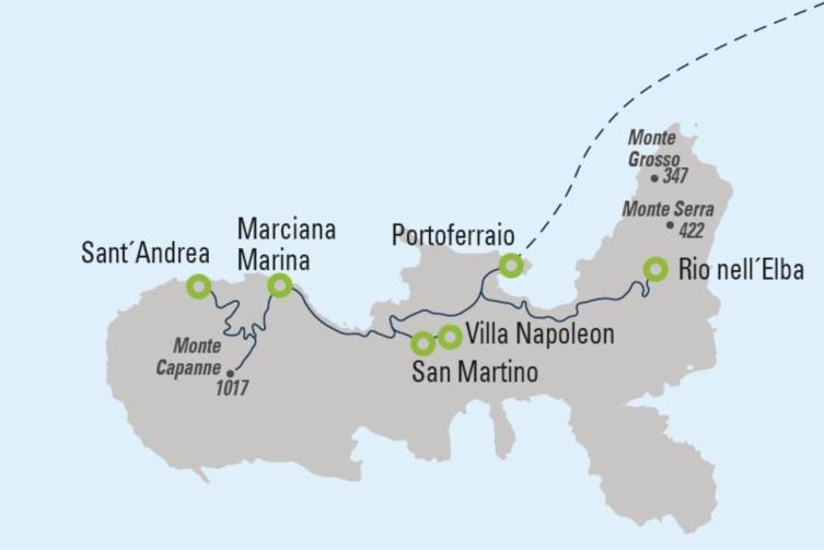 Sie wandern auf einem von Napoleon angelegten Weg zu seiner Residenz und weiter bis Cavo - nachmittags Gelegenheit zu einem Bummel durch Portoferraio.