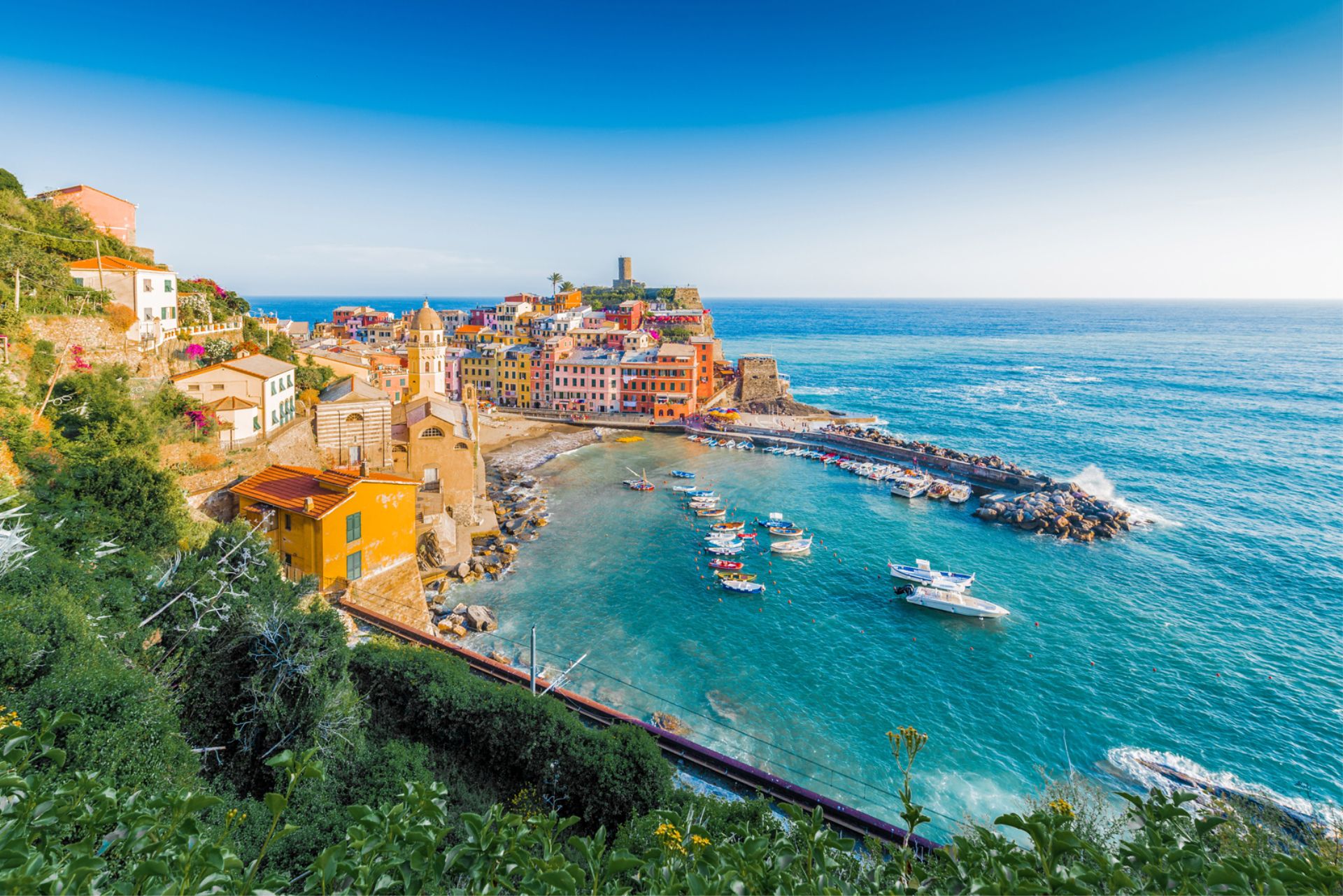 Eine der beeindruckendsten Regionen ganz Italiens sind die Cinque Terre: fünf alte, entlegene Dörfer an der ligurischen Küste. Hier verschmelzen das Meer, terrassenförmig angelegte Weinberge, mittelalterliche Kirchen und die in den Hang gebauten bunten Häuschen zu einer einzigartigen Kulisse.