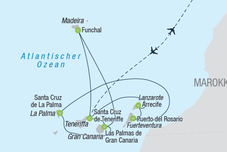 Erleben Sie die faszinierende Vielfalt der Kanarischen Inseln und Madeiras: Majestätische Vulkane, traumhafte Strände, spektakuläre Steilküsten, dichte Lorbeerwälder und blühende Gärten erwarten Sie bei angenehm milden Temperaturen auf dieser besonderen Kreuzfahrt. An Bord der eleganten MSC Musica reisen Sie entspannt von Insel zu Insel - jede beeindruckt mit ihrem ganz eigenen Charme und überrascht mit eindrucksvollen landschaftlichen Kontrasten.